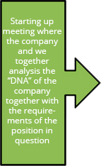 When the task starts, a thorough analysis is made of the background of the recruitment and the necessities as to skills, attitude, background, experience, education, success criteria, etc.